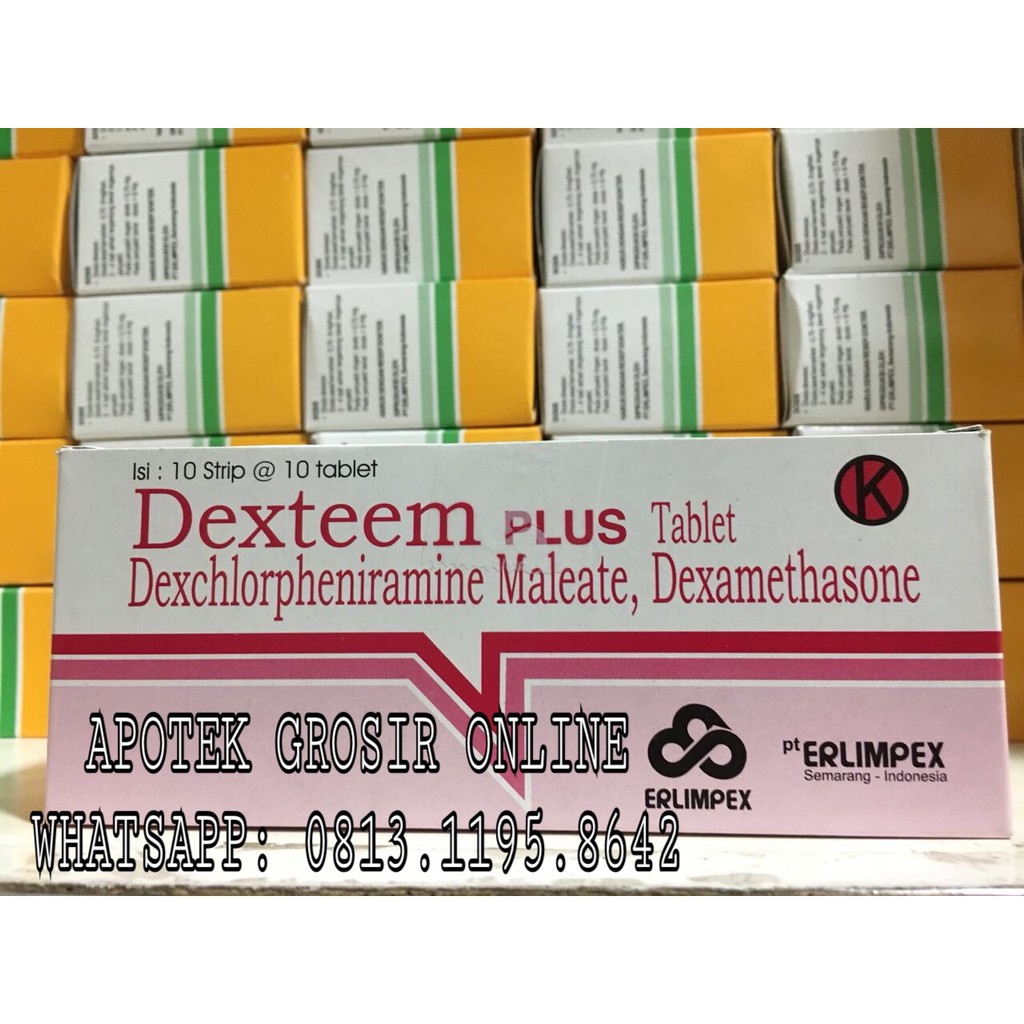 Dexteem plus tablet adalah obat kombinasi kortikosteroid dexamethason dan antihistamin dexchlorpheniramin. Dexteem plus tablet adalah obat kombinasi kortikosteroid dexamethason dan antihistamin dexchlorpheniramin. Dexteem plus adalah obat yang berguna untuk mengatasi alergi dan meredakan peradangan. 1 dos isi 10 strip x 10 tablet.