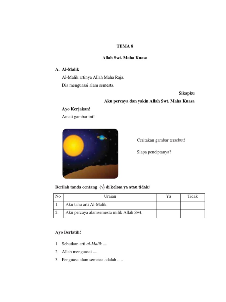 40+ Al Malik Artinya Allah Swt. Berilah tanda centang (√) di kolom ya atau tidak! Sikapku aku percaya dan yakin allah swt.