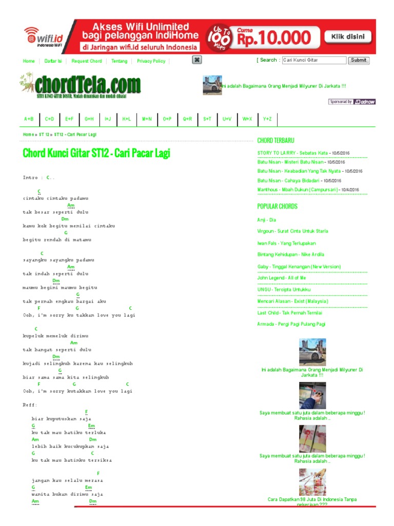 C jangan kau slalu merasa d bm wanita bukan dirimu saja em am lebih baik ku putuskan saja d g cari pacar lagi. Bila tidak berhasil, coba untuk mengilangkan tanda kutip, misal: Jangan kau s'lalu merasa wanita bukan dirimu saja lebih baik kuputuskan saja cari pacar lagi. Lirik cari pacar lagi dari st12 ini dipublikasikan pada tanggal 17 mei 2008 12 tahun yang lalubelum ada info detil tentang single ini.