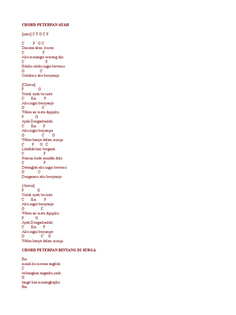 Chord Gitar Peterpan Yang Terdalam Dan The Chord 6ngewxgqpjlv from idoc.pub Sekian kumpulan kunci gitar chord lagu peterpan, semoga sobat bisa memainkan kunci gitar lagu peterpan dengan lancar. Chord peterpan ayah intro c f g c f c f gc dimana akan kucari c f aku menangis seorang diri c f hatiku selalu ingin bertemu. A a/f# (2x) a e f#m d e lilin kecil sinarmu pancarkan harapan a e f#m d jangan kau hilang jangan kau pergi g e temani aku yang sedih dan sepi bm a/c# d air.